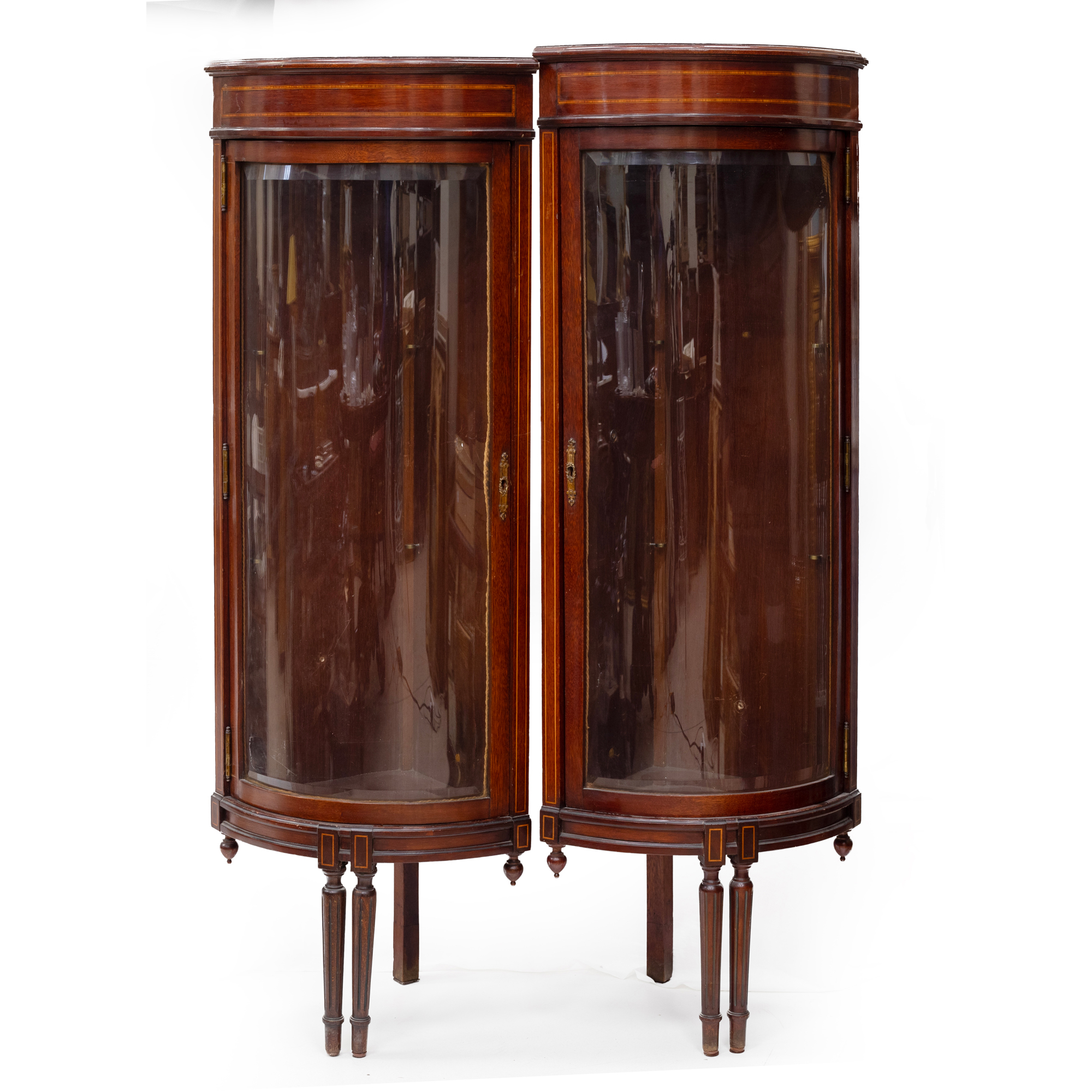 Pareja de vitrinas rinconeras en caoba con filete de limoncillo