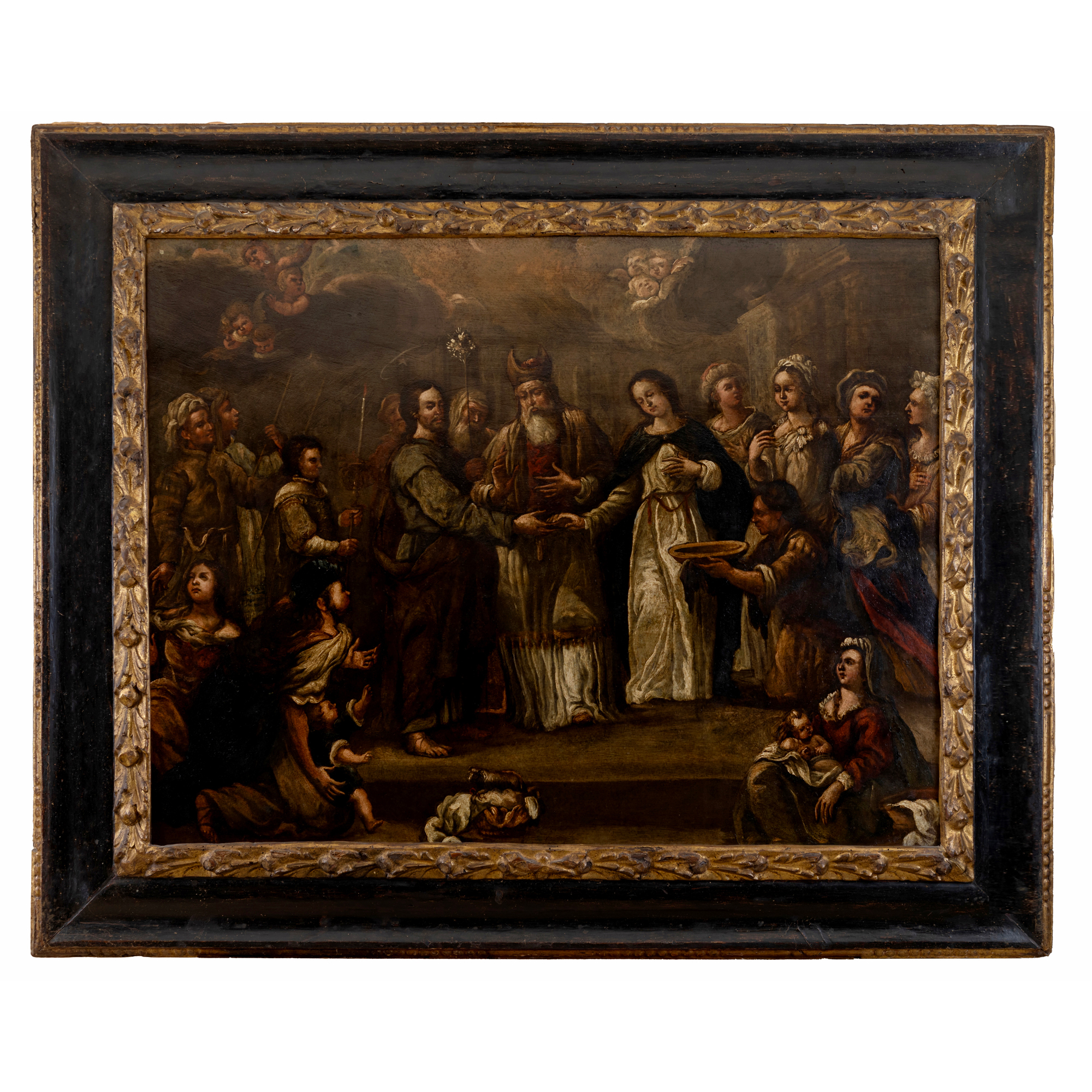 Óleo sobre cobre principios del siglo XVIII con marco original en madera tallada y dorada con entrecalle en negro.