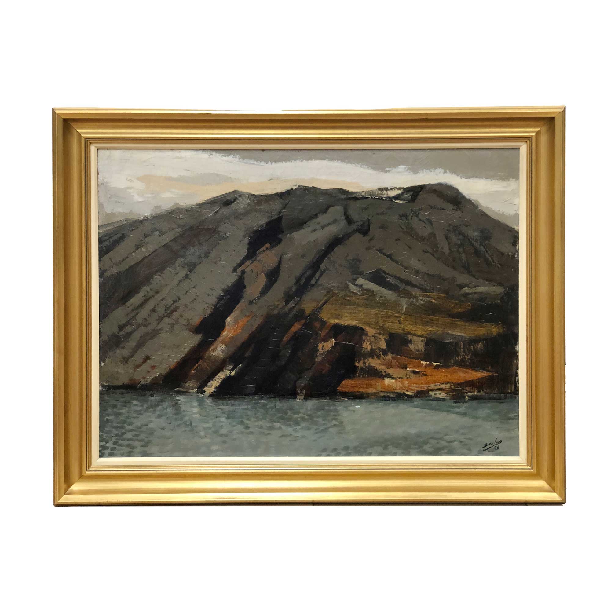 Vista de acantilado titulado y fechado en el año 1958 al dorso.Oleo sobre lienzo enmarcado