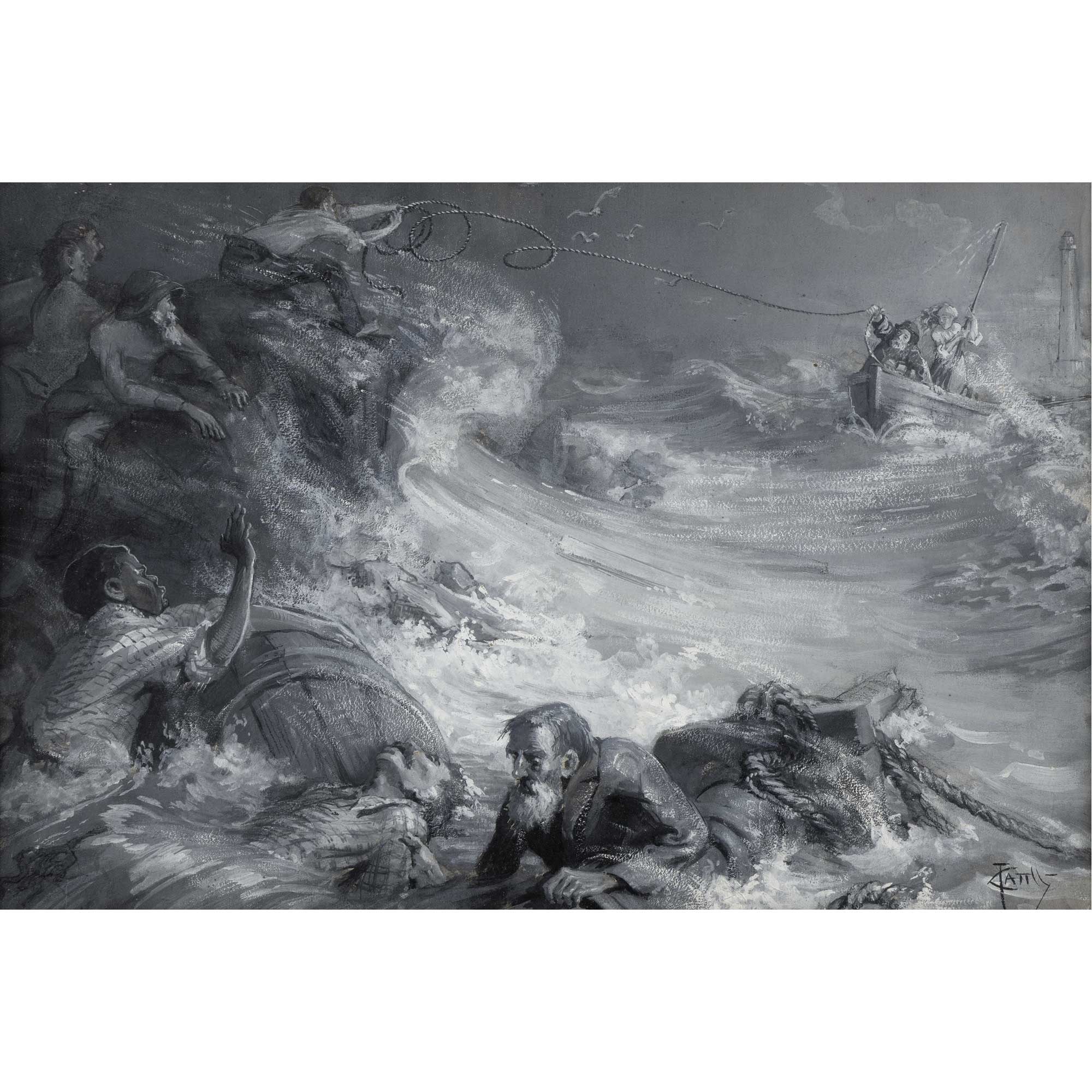 Grisalla realizada en gouache sobre papel. Firmado y enmarcado