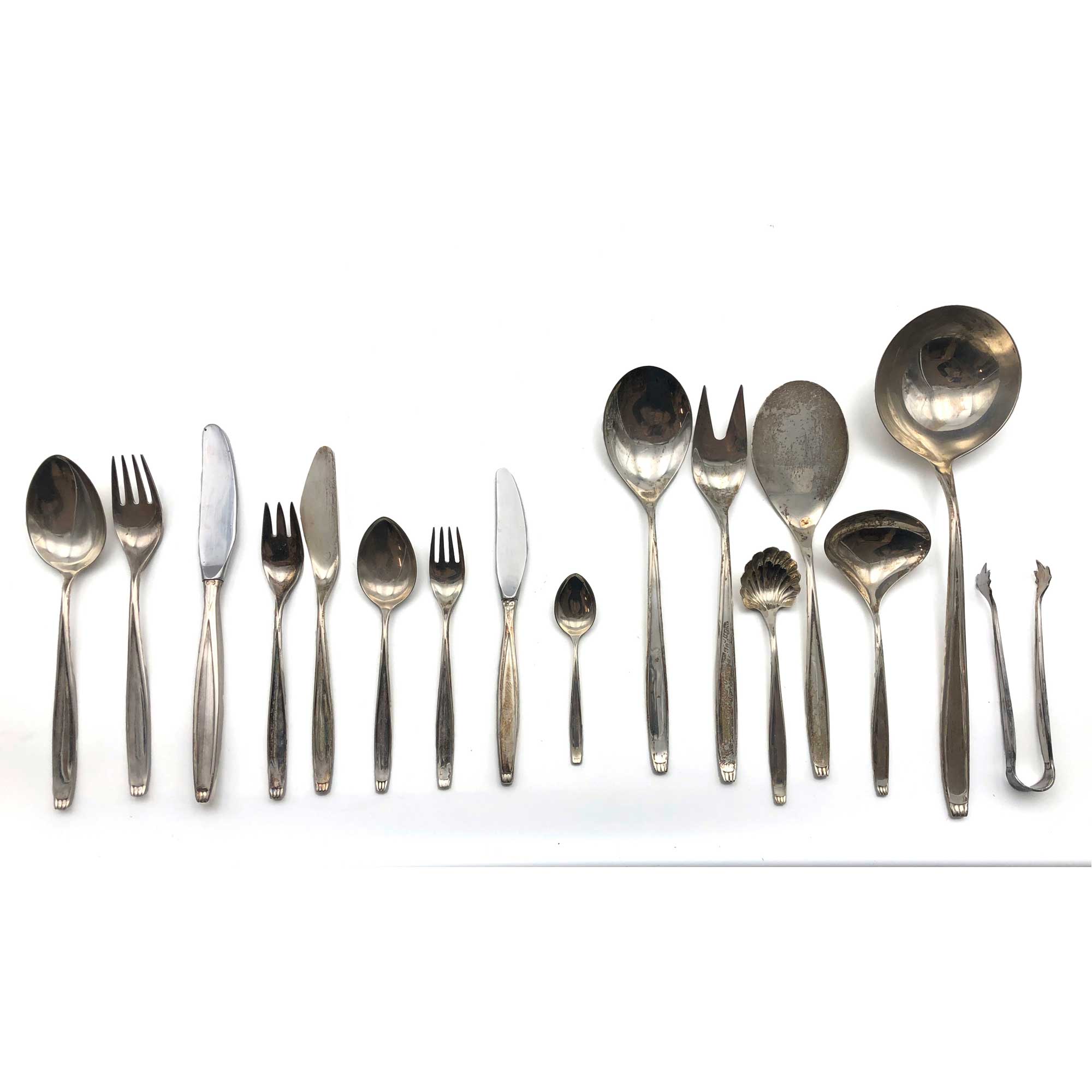 Cubertería en plata de 115 piezas. Peso 3582 gr sin cuchillos